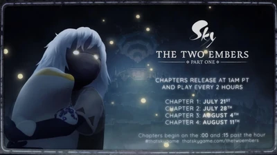 Sky: The Two Embers is an ongoing animated series released by thatgamecompany. The series began production in 2021, and is to be released in multiple Parts. The first chapter of Part 1 premiered on July 21, 2025 as an in-game preview screening alongside the Season of The Two Embers - Part 1. According to a recent interview, Part 2 is estimated to release in early 2027[2].